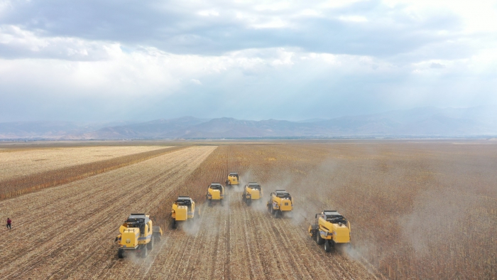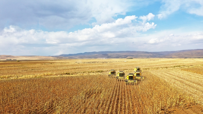 “Bunlardan biri de özellikle hem ilimiz hem de ülkemiz için önemli olan ayçiçeği yetiştiriciliğidir. Burada özellikle hem işletmeler bazında hem de ilçelerimizde üreticilerimiz tarafından bu ürün yetiştiriciliği yapılıyor. 2023 yılında 20 bin 799 dekarlık bir alanda 3 bin 116 ton yağlık ayçiçeği, 13 bin 500 dekarlık alanda da 3 bin 510 tonda çerezlik ay çekirdeği elde edilmiş bulunmaktadır. Toplamda baktığımızda da bu yıl 34 bin 279 dekarlık bir alanda 6 bin 626 ton hem yağlık hem de çerezlik ay çekirdeği hasadı beklemekteyiz. Hasadımız başlamış bulunmaktadır. Kısa sürede bu hasat bitecektir. Özellikle de hem katma değeri yüksek olması hem de verimli olmasından dolayı rağbet edilen ürünlerimizdendir. Bu gerekçede dekara baktığımızda ay çekirdeğinde yağlıkta dekarda 150 kilogram almaktayız. Çerezlikler özellikle sulu olarak yetiştiriciliği yapılmaktadır. Onda da dekar başına 260 kilogram verim vermektedir. İlimizin ekonomisi için düşündüğümüzde özellikle 2023 yılında yağlık ayçiçeğinde 140 milyon 500 bin TL gibi bir gelir bekliyoruz. Çerezlikte ise 40 milyon 500 bin TL bekliyoruz. Toplama baktığımızda 181 milyon TL gelir bekliyoruz.”