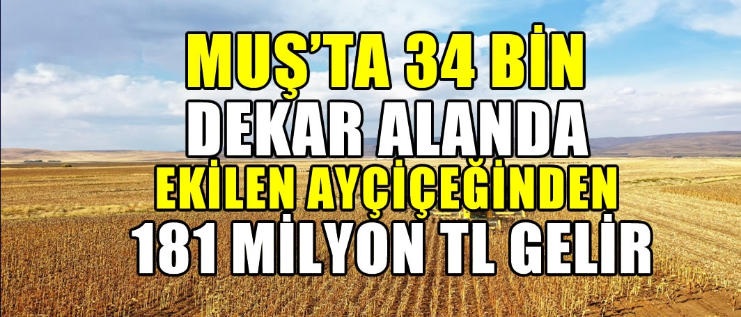 Ovaya ekilen ayçiçeğinin hasadı için biçerdöverin Muş Ovası'nda hasat yaptığını ifade eden Muş Tarım ve Orman İl Müdürü Mehmet Gün, 34 bin dekar alanda ekilen ayçiçeğinden 181 milyon TL gelir beklediklerini belirterek, “Muş ilimiz polikültür yetiştiriciliğine uygun olan illerimizden biridir. Özellikle de yüzde 42 oranla 357 bin hektarlık bir işlenebilir araziye sahip bulunmaktayız. Bunun içerisinde de özellikle de katma değer ürünlerinin de yetişmesi önemli bir yer tutmaktadır” dedi.
