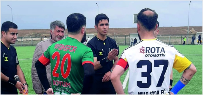 ALPARSLAN DİYARI- Muş Şehir Stadyumu yanındaki sentetik sahada oynanan karşılaşmada Muş Spor FC ile Yaygın Spor 0-0 berabere kaldı. Sert müdahalelerin gölgesinde geçen maçta hakem tam 8 sarı kart ve 2 kırmızı kart gösterdi.