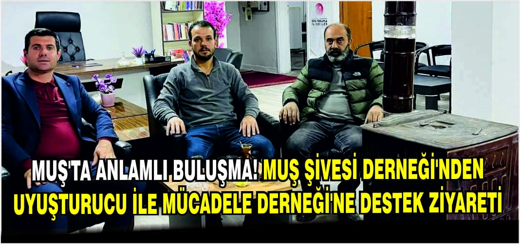 ALPARSLAN DİYARI- Muş Şivesi Derneği Başkanı Maşallah Yetiş ve Başkan Yardımcısı Ufuk Şepik, bağımlılıkla mücadelede kentte önemli çalışmalar yürüten Uyuşturucu ile Mücadele Derneği Başkanı Alparslan Bingöl’ü dernek binasında ziyaret etti.