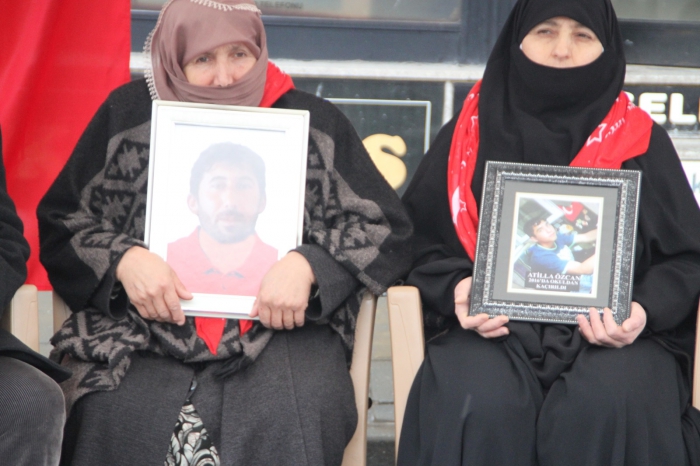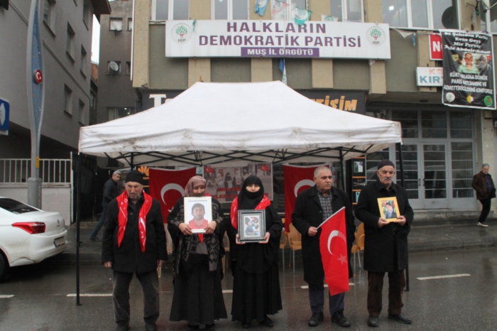 ALPARSLAN DİYARI- Muş'ta çocuklarının, terör örgütü PKK tarafından dağa götürülmesinden HDP'yi sorumlu tutan aileler, partinin il başkanlığı binası önünde başlattıkları oturma eylemini soğuk havaya rağmen sürdürdü.