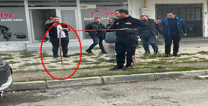 Araba çalıştırılarak ses yapılsa da yılan saklandığı yerden çıkmadı. Arabanın motor kısmına su sıkılarak yılan bulunduğu yerden çıkartılmaya çalışıldı. Yılanın suya da tepki vermemesi üzerine ekipler, yılanın sakinleşmesi için bir süre bekledi. Daha sonra ekipler ve çevredekiler koyunyünü yakmaya başladı.