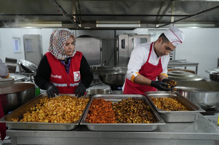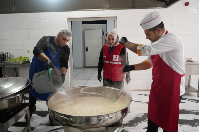 ALPARSLAN DİYARI- 155 yıldır hayırseverlerin bağışlarıyla Ramazan yardımlarını ihtiyaç sahiplerine ulaştıran Kızılay’ın Muş’taki Gıyasettin Bingöl Aşevinde de tatlı bir telaş bulunuyor. Türk Kızılay’ı, ihtiyaç sahibi ailelere yönelik insani yardım çalışmalarını titizlikle sürdürüyor. Bu çerçevede, aşevinde son derece özenle hazırlanan sıcak yemekler, bin 200 ailenin sofrasına ulaştırılıyor.