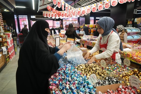 Tezgahta 100 çeşitten fazla şeker ve çikolata çeşidi bulundurduklarını aktaran Furkan Yaşar isimli esnaf, "Ramazan Bayramına sayılı günler kaldı. Vatandaşlardan çok fazla talep var. Kilosu 100 TL ile 600 TL arasında değişen şeker fiyatlarımız mevcuttur. Köylerden gelen ailelerimiz var. Onlar genellikle 10 kilodan fazla şeker alıyor” dedi.