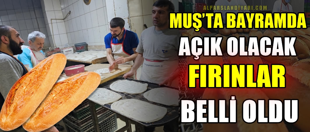 Bu yıl bayramın ilk günü Muş’ta 10 fırın hizmet verecek. İkinci gün 10, üçüncü gün ise 9 fırın vatandaşın ekmek ihtiyacını karşılayacak.