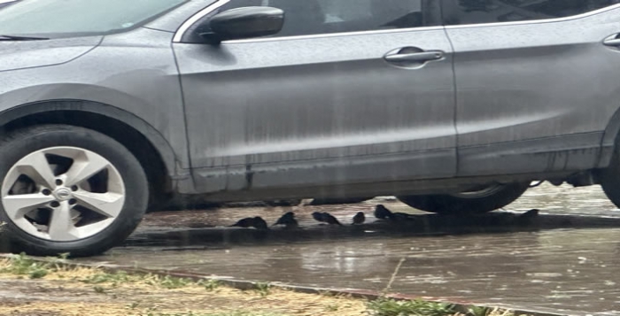 Sonbaharın başlangıcıyla yağmur da kentte etkisini gösterdi. Yaklaşık bir haftadır etkisini gösteren yağmur, hayvan dostlarımıza da zor anlar yaşattı. Şiddetli yağmurdan kaçan kuşlar, bir otomobilin altına sığınarak yağmurdan korunmaya çalıştı. Otomobilin altına dizili olarak yağmurun geçmesini bekleyen kuşlar renkli görüntüler oluşturdu.