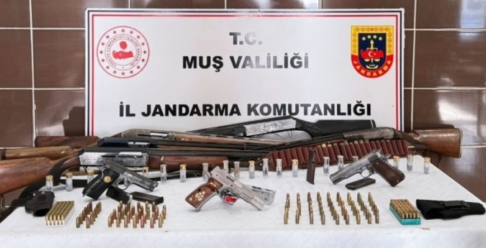 Muş'un Malazgirt ilçesinde düzenlenen operasyonda 3 tabanca, 5 ruhsatsız av tüfeği, 283 fişek ve 6 tabanca şarjörü ele geçirildi.