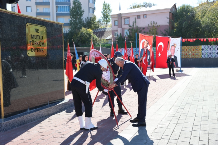 Saygı duruşu ve İstiklal Marşı’nın okunmasıyla başlayan programda, Cumhuriyet’in kurucusu Gazi Mustafa Kemal Atatürk ve kahramanlarına duyulan minnet ve saygıyı ifade eden anlar yaşandı. Ardından Atatürk Anıtı’na çelenk sunumları yapıldı.