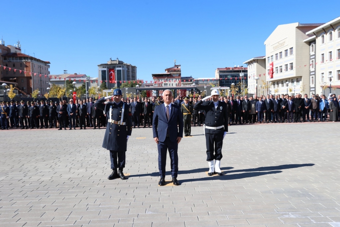 ALPARSLAN DİYARI-Muş Kent Meydanı’nda düzenlenen çelenk sunma törenine Muş Valisi Avni Çakır, il protokolü ve çok sayıda vatandaş katıldı.