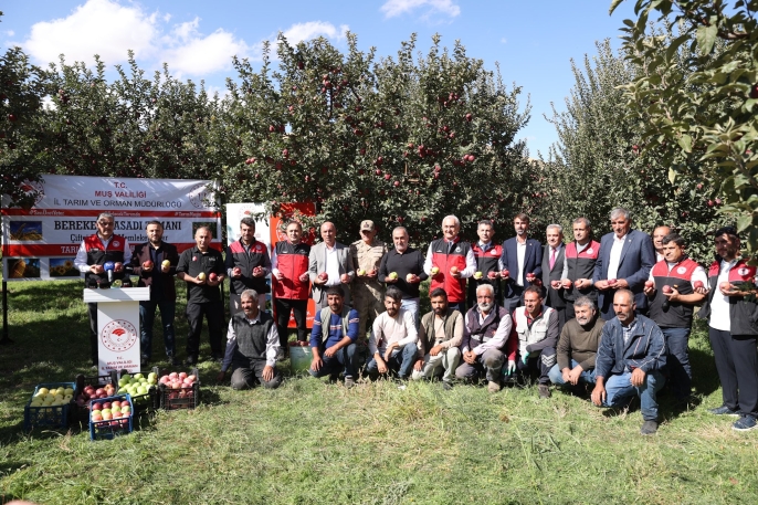 Tarım ve Orman İl Müdürlüğü tarafından düzenlenen törene katılan Muş Valisi Avni Çakır, ağaçlardan elma topladı, işçilerle sohbet etti.