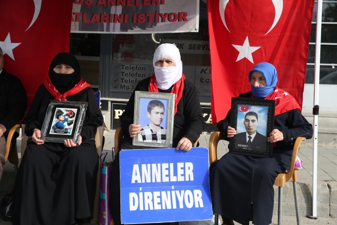 "Anneler direniyor", "Evlat nöbetindeyiz" ve "Artık yeter, yakamızdan düşün" yazılı pankartlar açan aileler, umutla bekledikleri çocuklarına teslim olmaları çağrısında bulundu.