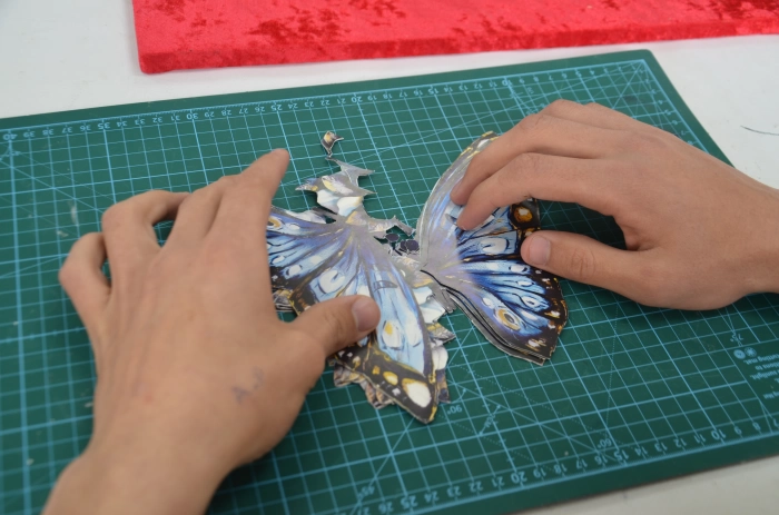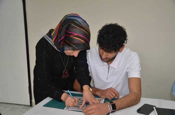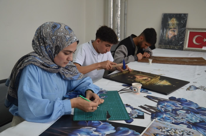 "Burada gençlerimize rölyef, filografi sanatını anlatıyoruz. Gençlerimiz işten, okuldan çıktıkları zaman buraya geliyor. Yaptığımız birçok tabloyu kurumlarımıza hediye ettik. Çiviyle telin buluşması dediğimiz bir sanatımızdır filografi. Kağıt rölyef birleştirme sanatı olarak yaptığımız güzel resimlerimiz var. Onların da tablolarını öğrencilerimizle yapıp hem kurumlara hediye ediyoruz hem kendilerine hediye ediyoruz." diye konuştu.