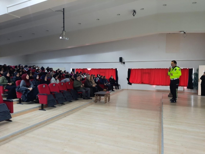 Trafik Denetleme Şube Müdürlüğü ekipleri, "2021-2030 Karayolları Trafik Güvenliği Strateji Belgesi" ve "2024-2027 Eylem Planı" çerçevesinde saha çalışmalarını aralıksız sürdürüyor. Bu kapsamda Şehit Davut Karaçam Kız Anadolu İmam Hatip Lisesi’nde düzenlenen programda, öğrencilerin trafikteki güvenliği mercek altına alındı.