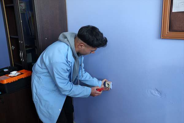 Ekipte 8 öğrenci ve 4 öğretmenin bulunduğunu bildiren Günenç, "23'üncü okulumuza geldik. Burada kapı, pencere, priz, elektrik tesisatı, sıra ve masaların bakımını yaptık. Okulun eksikliklerini tamamladık. Bu işi öğretmen ve öğrencilerimizle gönüllü yapıyoruz." ifadesini kullandı.