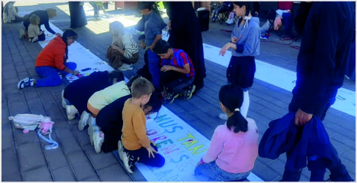 Etkinlik boyunca çocuklar, Filistin bayrağı ve barış temalı resimler yaparak bu anlamlı projeye katkı sağladı.