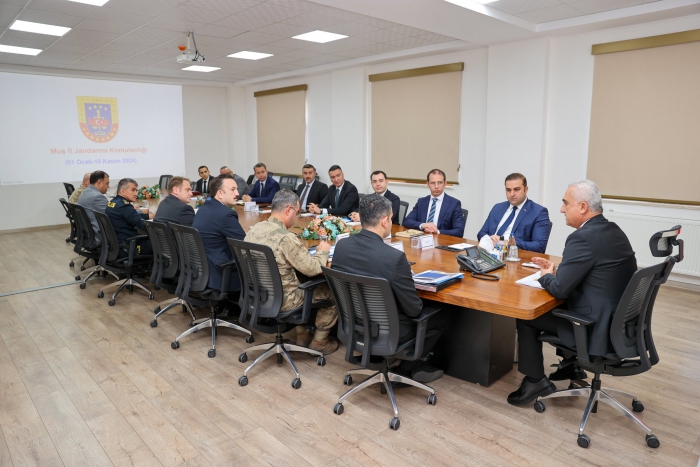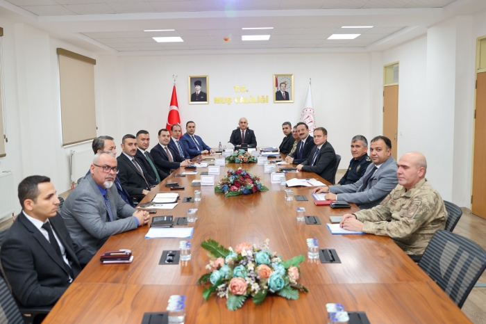 ALPARSLAN DİYARI- Muş Valiliği Toplantı Salonu’nda yapılan toplantıya, vali yardımcıları, ilçe kaymakamları ve kolluk birim amirleri katıldı.