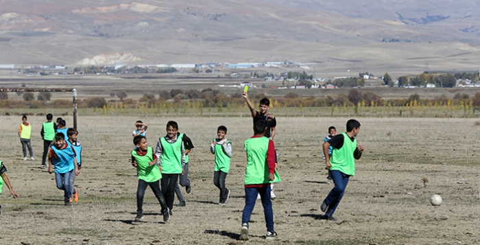 ALPARSLAN DİYARI- Muş'ta gençlik merkezi liderleri ve gönüllü gençler, "Gazozuna Maç" projesi kapsamında gittikleri köylerde futbol maçları organize ederek, çocuk ve gençleri spora yönlendirmeye çalışıyor.