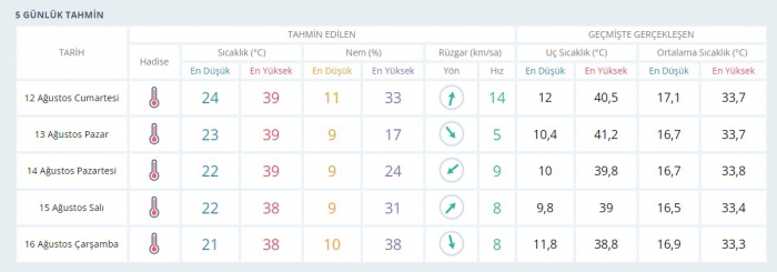 Muş’ta hava durumu en yüksek 40 derece en düşük 38 derece olarak seyredecek. İşte Muş’ta 5 günlük hava durumu….