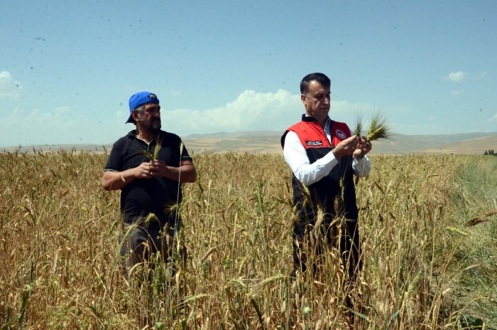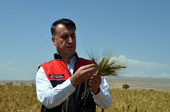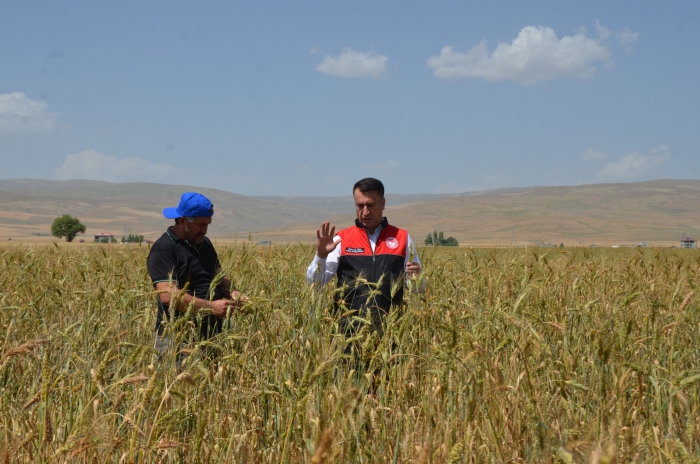 ALPARSLAN DİYARI- Muş Kırköy beldesinde çiftçilik yapan Hüseyin Karakurt, ilkbaharda 17 dekara ata tohumu buğday ekti. Çiftçiyi tarlasında ziyaret eden Tarım ve Orman İl Müdürü Mehmet Gün, geçmişi 7 bin yıla dayanan ata tohumunu toprakla buluşturduklarını söyledi.