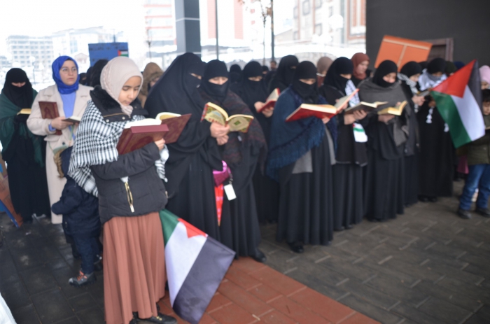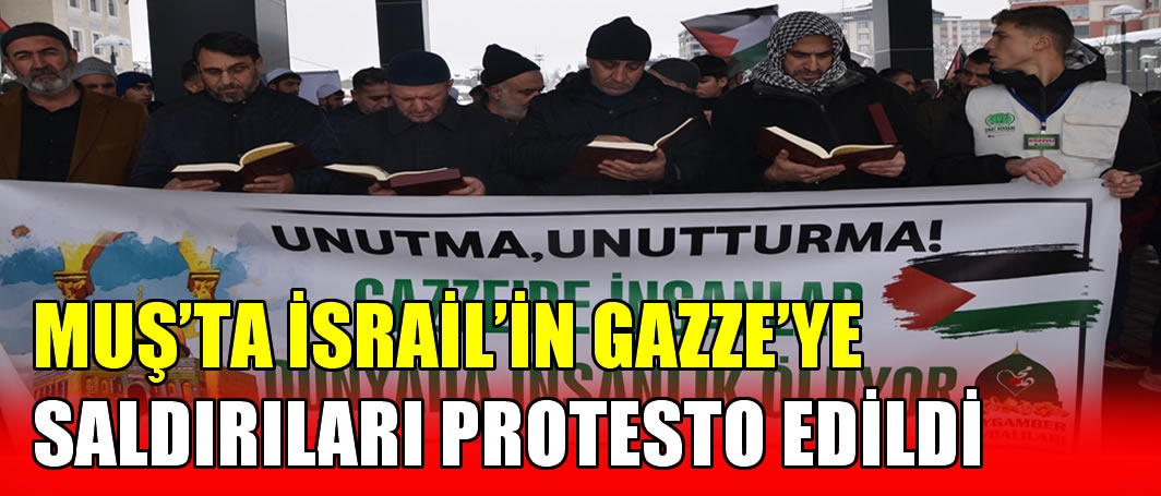 ALPARSLAN DİYARI- Muş’ta İsrail’in Gazze’ye yönelik saldırılarına tepki gösteren vatandaşlar, kent meydanında Kur’an-ı Kerim okuyarak Filistin’e destek verdi. Kalabalık, İsrail ve Amerika aleyhine sloganlar attı.