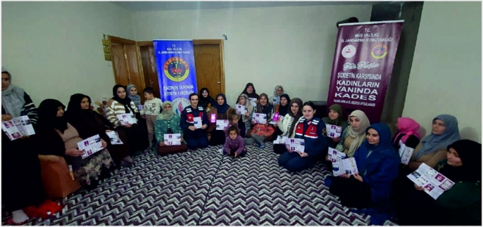 ALPARSLAN DİYARI- Muş İl Jandarma Komutanlığı Asayiş Şube Müdürlüğü Aile İçi Şiddetle Mücadele ve Çocuk Kısım Amirliği ekiplerince, Hasköy ilçesine bağlı Elmabulak köyünde ikamet eden kadın vatandaşlarla bir araya gelindi. Düzenlenen etkinlikte Kadın Destek Uygulaması (KADES) tanıtılarak uygulamanın kullanım şekli ve sağladığı kolaylıklar hakkında bilgi verildi.