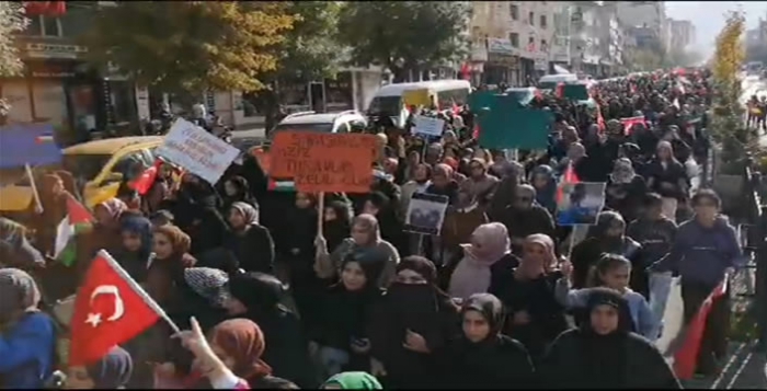 ALPARSLAN DİYARI- Hür Dava Partisi (HÜDA PAR) öncülüğünde Muş Kent Meydanı'nda toplanan binlerce kadın, Filistin'e destek sloganları attı. Siyonist işgal rejimi tarafından Gazze'de kadın ve çocukların katledilmesine tepki gösteren Muşlu anneler, sık sık tekbir getirerek, işgal rejimini lanetlediler.