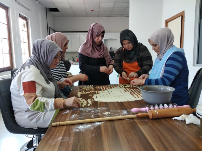 Her yaş grubundan 15 kursiyerin aşçılık kursuna başvurduğunu ve kursiyerlere yemek yapmanın tüm inceliklerinin anlatıldığını belirten Usta öğretici Züleyha Demir, "Kadınlar burada yaptığımız yemekleri hem satıyorlar hem de evlerine götürüyorlar. Tatlıdan tuzluya, su böreği, mantı, yöresel yemeklere kadar çok sayıda yemek yapıyoruz. Endüstriyel ve hazır ürünlere karşıyız. Sağlıklı ve sürdürülebilir ürünler üretmeye gayret ediyoruz. Özellikle yöresel yemeklere ağırlık veriyoruz." diye konuştu.