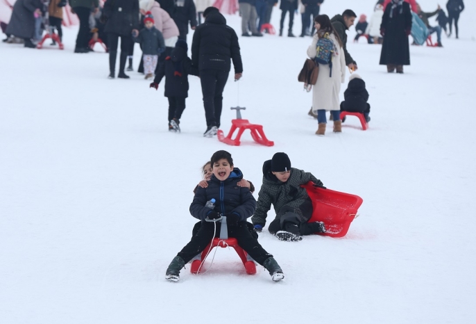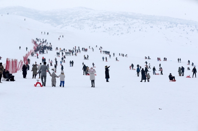 Muş'ta hafta sonu tatilini, 2 bin 300 rakımlı Güzeldağ Kayak Merkezi'nde geçiren kayakseverler, kayak takımları ve kızaklarla kayarak keyifli anlar yaşadı.