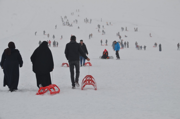 Vatandaşlar, merkezde kayak takımları, snowboard ve kızaklarla kayarak eğlendi.