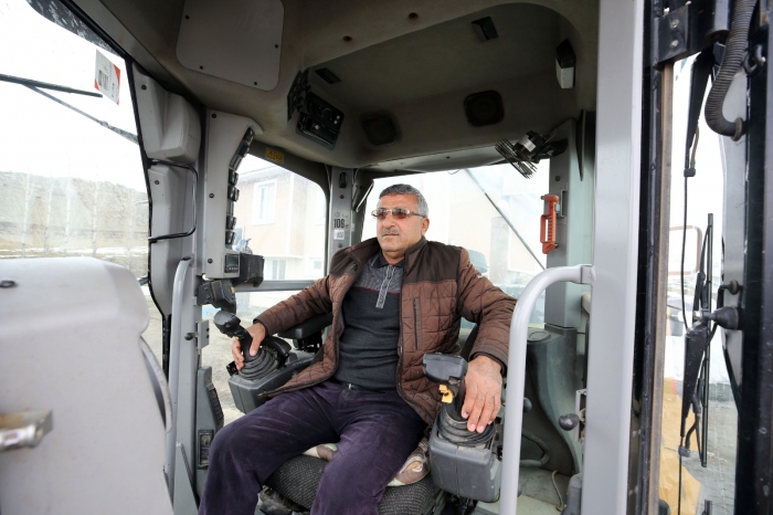 ALPARSLAN DİYARI- İş makinesi operatörü olarak 1986'da Yol ve Ulaşım Hizmetleri Müdürlüğünde işe başlayan 4 çocuk babası Akar, tüm zorluklarına rağmen işini ilk günkü heyecanla yapıyor.