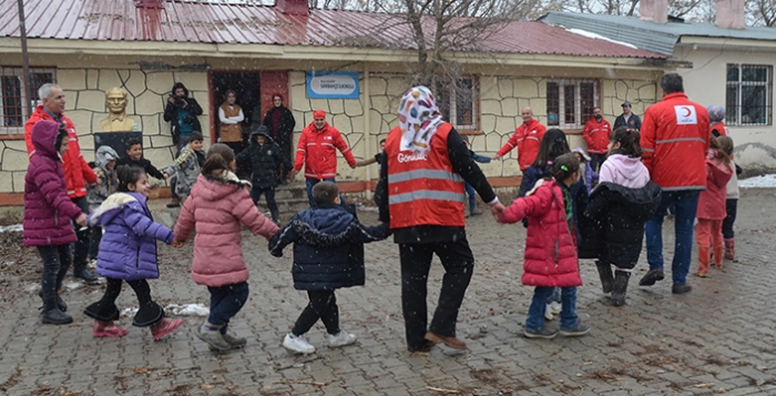 Gönüllülere eşlik eden Kızılay Şube Başkanı Faik Aktaş, köylerdeki çocuklara yönelik etkinlik yaptıklarını söyledi.