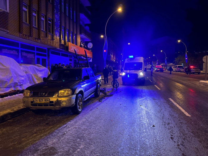 ALPARSLAN DİYARI- Muş Merkez Cumhuriyet Caddesi eski otogar civarında saat 23.00 sularında meydana gelen kaza şöyle gelişti: Alınan bilgilere göre, Cumhuriyet caddesi eski otogar civarında öğrenci yurduna yürüyen Salih A. ve henüz ismi belirlenemeyen bir arkadaşı karşıdan karşıya geçerken şehir merkezinden yeşilce mahallesi istikametine giden 49 AAP 240 plakalı araç buzlanmadan dolayı fren tutmadı. Araç yoldan çıktı ve 2 yayaya çarptı. Daha sonra yolda geçen başka araçlarda kazayı fark ederek frene asıldı. Buzlanmadan dolayı fren tutamayan araçlarda birbirine girdi.