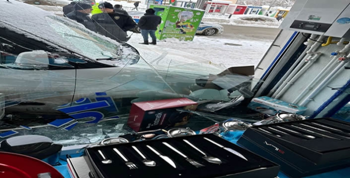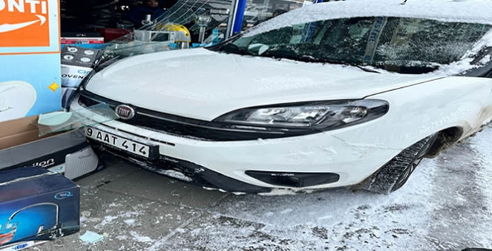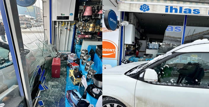 Seyir halinde manevra yapan araç park halindeki hafif ticari araca arkadan çarptı. El freni çekilmeyen park halindeki otomobil hareket ederek cadde üzerindeki bir mağazaya girdi. İşyeri ile otomobilde hasar oluşurken olayda yaralanan olmadı. Kazanın ardından olay yerine polis ekipleri sevk edildi.