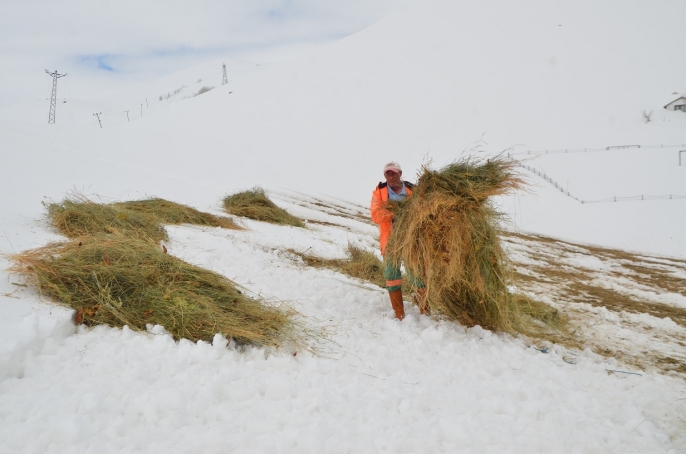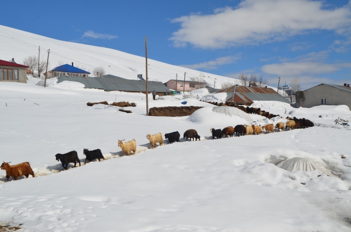 Köyde besicilik yapan Yusuf Güldere ise zorlu koşullara rağmen hayvancılığı sürdürdüklerini belirterek, “Evlerimiz hâlâ kar altında. Kar erken yağıyor ve geç kalkıyor. Buna rağmen hayvanlarımıza bakmak zorundayız.” dedi.