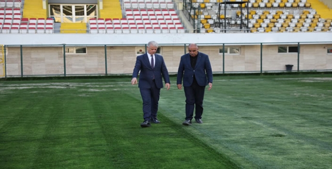 İl Müdürü Kılıç, stadyumda yapılan hazırlıklar hakkında tesis amirinden bilgi aldı. İncelemelerde, saha ve tribünlerde yürütülen çalışmaların devam ettiği belirtildi.