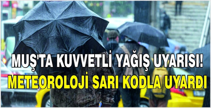 Muş ve diğer iller için yapılan "sarı" kodlu uyarıda, vatandaşların sel, su baskını, yıldırım, heyelan, yerel dolu ve kuvvetli rüzgar gibi olumsuzluklara karşı dikkatli ve tedbirli olmaları istendi.