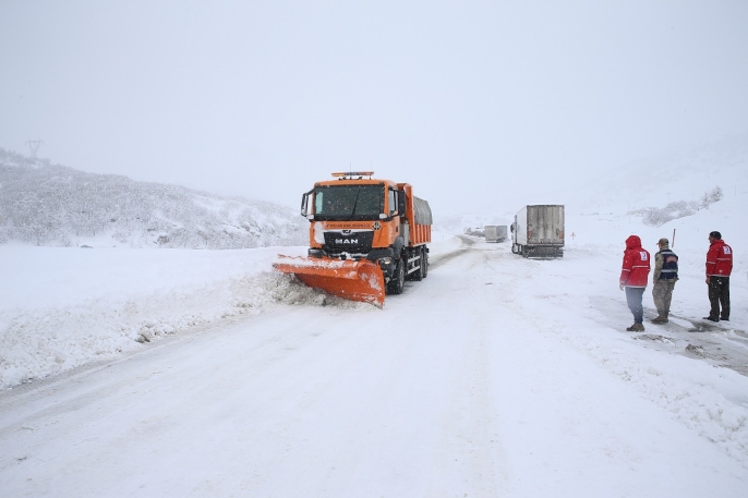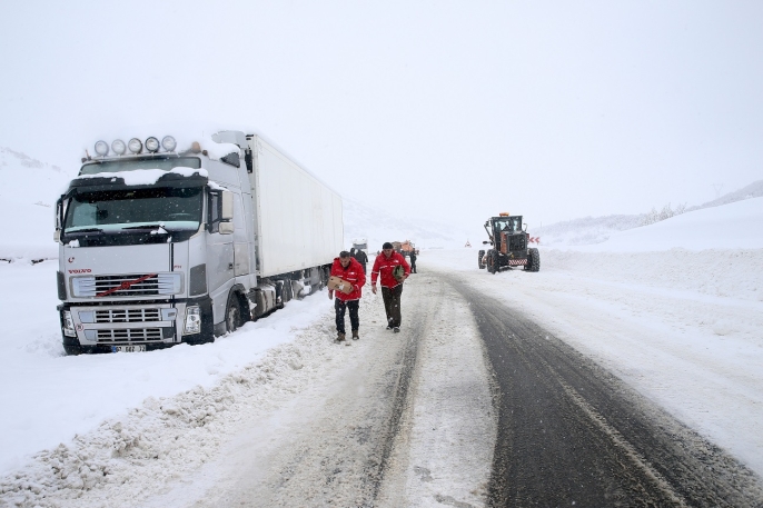Kızılay ekiplerinin yolda kalanlara kek, meyve suyu ve çorba ikram ettiği bölgede, AFAD görevlileri ise ilerlemekte güçlük çeken araçları iterek yola devam etmelerini sağladı.