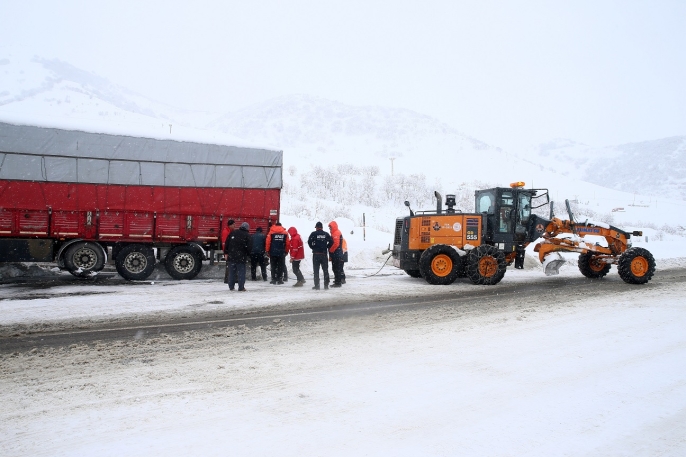 Yolu kardan temizleyen Karayolları ekipleri, ayrıca kara saplanan araçları halatla çekerek bulundukları yerden çıkardı.