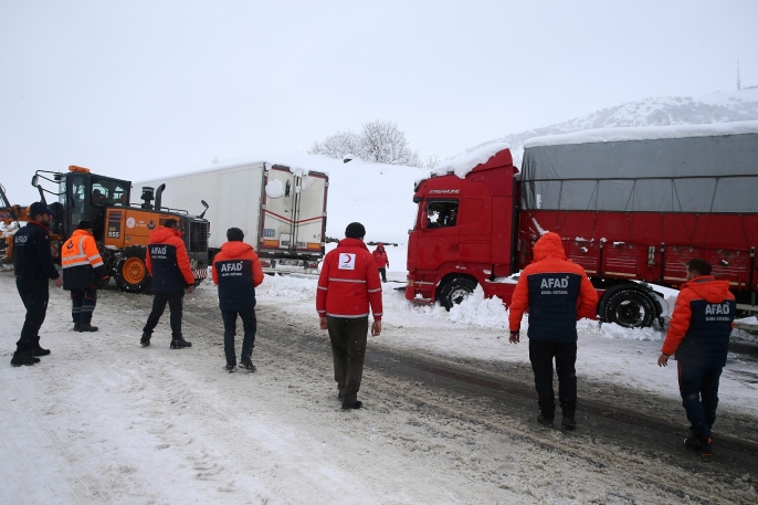 Tır sürücüsü Hayrettin Çelik ise sebze halinde çalıştığını dile getirerek, "Gece 20.00'den beri buradayız. Yollar kapandı. Adana'ya sebze getirmeye gidiyordum. Ekipler çalışıyor. Kızılay, AFAD ve jandarma geldi, bize destek verdi. Onlara çok teşekkür ediyoruz." dedi.