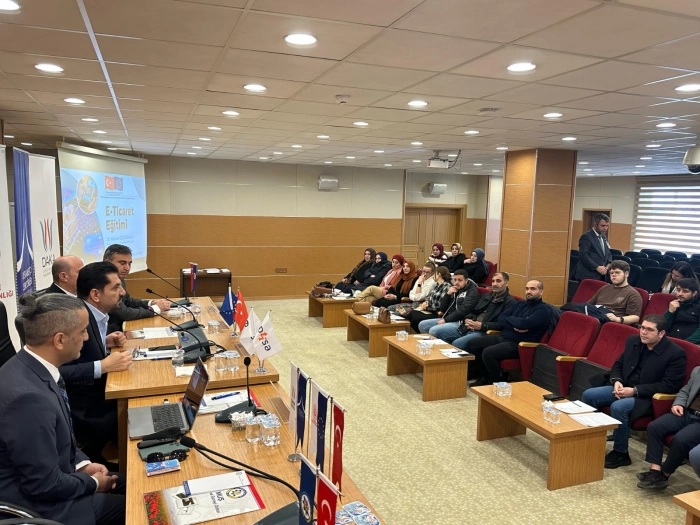 Eğitimde, Dr. Mazlum Özçagdavul katılımcılara e-ticaretin temel prensiplerini, başarılı bir online ticaretin nasıl yürütülebileceğini ve dikkat edilmesi gereken noktaları detaylı bir şekilde anlattı.