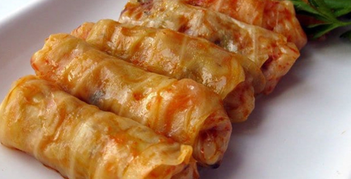 Dolma denilince insanın aklına öncelikle pirinç gelir ancak bu dolma bu algıyı yıkmaktadır. Bulgurla ve kıyma ile yapılan dolma bulgurla yapılan dolmaların daha lezzetli olduğunu ispatlar nitelikte. Kıyma ve bulgurdan oluşan harç lahana yapraklarının içine konularak sarılır. Tencereye domatesle birlikte konularak pişirilir. Servis sırasında da üzerine kızdırılmış tereyağı gezdirilir ve ortaya damakları şenlendiren bir lezzet çıkar. Dolmanın asıl tadını ise içindeki domates suyu verir. Size bildiğiniz dolmaları unutturacak olan domatesli lahana dolmasını mutlaka denemelisiniz.