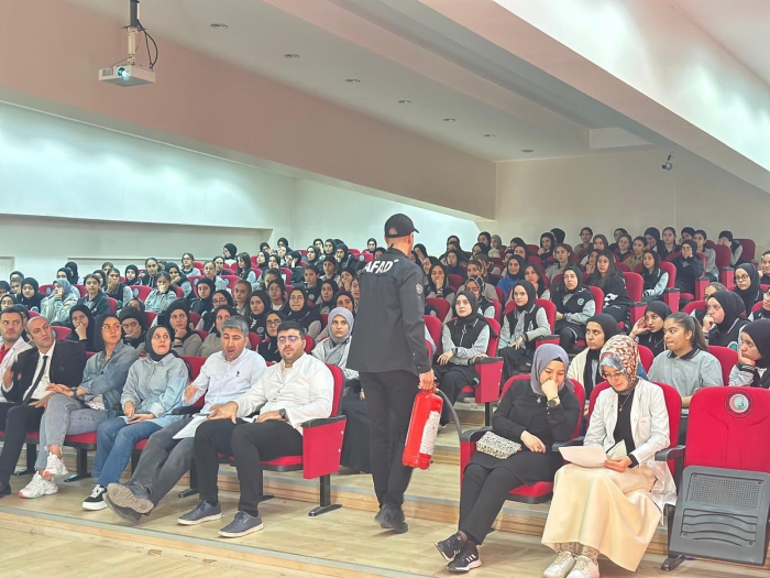 ALPARSLAN DİYARI- Muş Valiliği Afet ve Acil Durum İl Müdürlüğü (AFAD) Şehit Davut Karaçam Anadolu Kız İmam Hatip Lisesi öğrenci ve öğretmenlerine bilgilendirme yaptı.