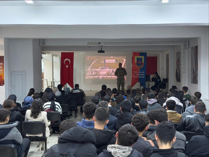 ALPARSLAN DİYARI- Muş İl Jandarma Komutanlığı Asayiş Şube Müdürlüğü ekiplerince, Sungu Eğitimciler Çok Programlı Anadolu Lisesi öğrencilerine yönelik tanıtım programı düzenlendi. Program kapsamında öğrencilere Jandarma Teşkilatı’nın görev ve sorumlulukları ile Jandarma ve Sahil Güvenlik Akademisi hakkında detaylı bilgiler verildi.