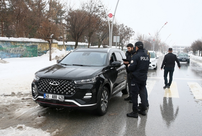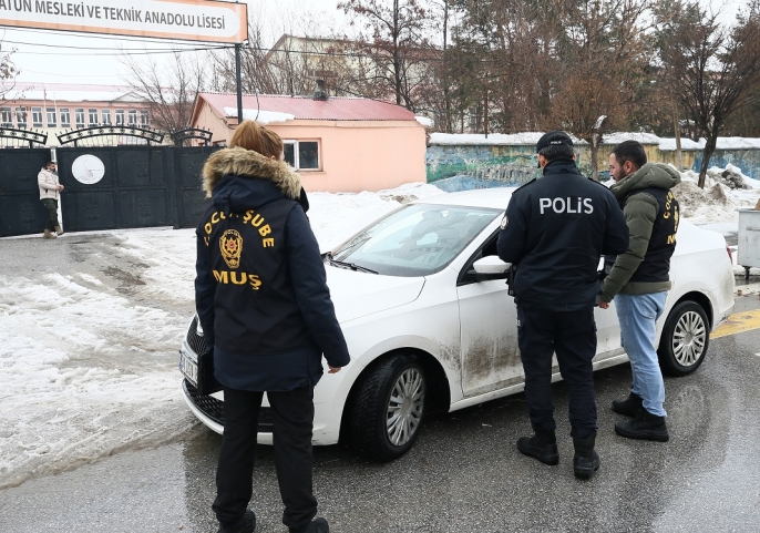 Zafer Mahallesi'ndeki Selcen Hatun Kız Mesleki ve Teknik Anadolu Lisesi önünde denetim yapan ekipler, okul çevresindeki kişiler ile şüpheli görülen araçları kontrol etti.