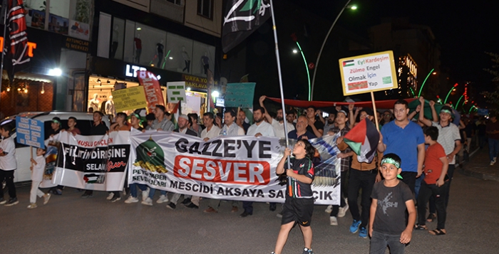ALPARSLAN DİYARI- Kent Meydanı'nda bir araya gelen vakıf üyeleri ve vatandaşlar, İsrail aleyhinde sloganlar atarak tekbir getirdi.