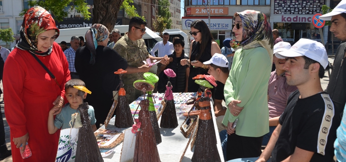 ALPARSLAN DİYARI- Eski Valilik önünde açılan sergiyi gezen İl Milli Eğitim Müdürü Enver Kıvanç, gazetecilere, yıl içinde özel öğrencilerin yaptığı el emeği göz nuru ürünlerin vatandaşın beğenisine sunulduğunu söyledi.