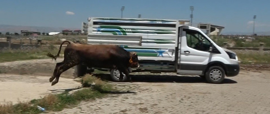Muş hayvan pazarında bir anda sahibinin elinden kurtulan kurbanlık dana, pazar içinde kaçmaya başladı. Dananın üzerine geldiğini gören vatandaşlar büyük korku yaşadı. Sahibinin elinden kaçan dana, kısa süre sonra yakalandı.
