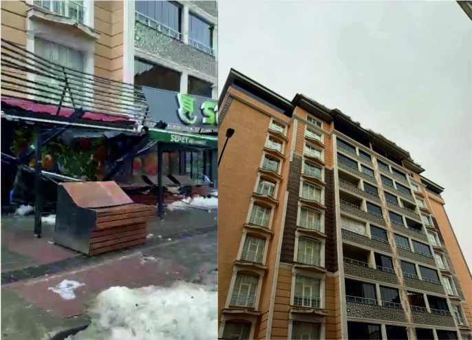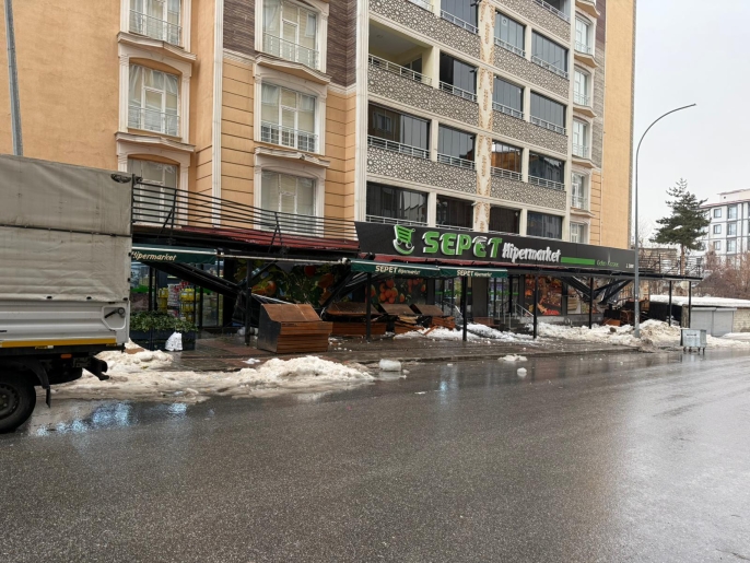 ALPARSLAN DİYARI- Edinilen bilgilere göre, biriken karların aniden kayması sonucu giriş bölümünde bulunan raflar kırılırken, raflardaki ürünler de zarar gördü.