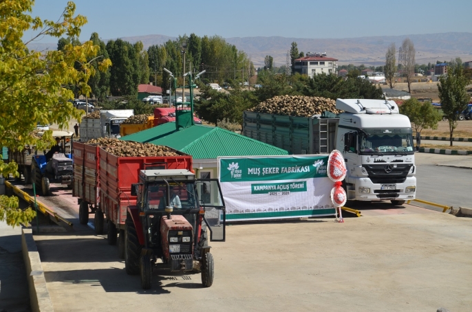 ALPARSLAN DİYARI-Fabrika önünde düzenlenen törende, basın mensuplarına açıklama yapan Muş Şeker Fabrikası Genel Müdür Yardımcısı Ercan Koç, 2025-2026 yılı 44. pancar alım kampanyasına başladıklarını söyledi.