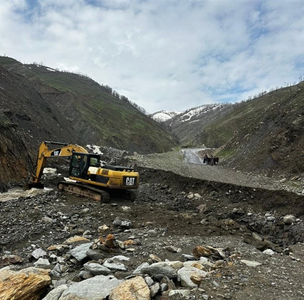 İl Özel İdaresi ekipleri tarafından yol onarılırken, Sağlık ekipleri de doğum hastası kadını hastaneye ulaştırmak için seferber oldu.